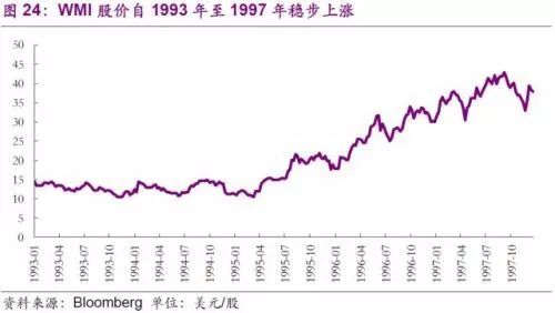 進入90年代,公司不滿足于現(xiàn)有的業(yè)務(wù)模式,意圖通過繼續(xù)的并購開拓多元化市場。然而結(jié)果卻超出了公司的預(yù)想。公司于1993年更名為WMX Technologies,意在體現(xiàn)公司多元化的業(yè)務(wù)范圍。通過收購,公司先后進入危廢、石棉移除、金屬腐蝕處理、甚至是草坪養(yǎng)護市場。與之前的垃圾焚燒和垃圾回收不同的是,上述行業(yè)在初期均需要大量資金投入,回報卻極其有限。公司的多領(lǐng)域擴張在一開始收到了回報,股價從1993年初的8.87美元一路上揚至1997年初的18.86美元,漲幅達112%。