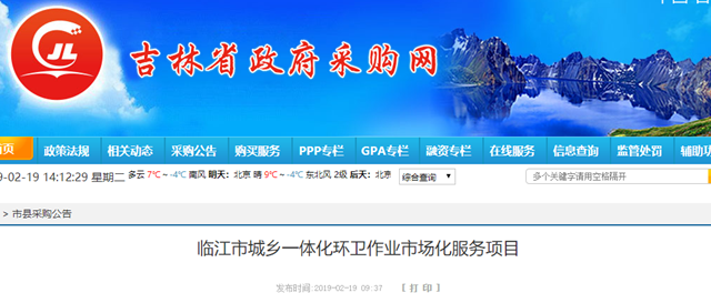 原標(biāo)題:4.4億 吉林省臨江市城鄉(xiāng)一體化環(huán)衛(wèi)項(xiàng)目預(yù)中標(biāo)公示