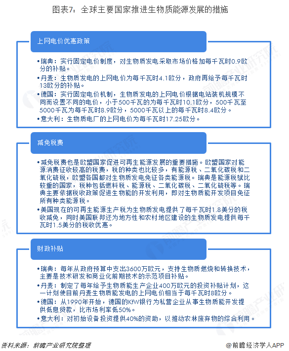 歐盟是當前全球生產(chǎn)和消費生物質(zhì)燃料最多的國家,美國排在全球第二位,但與歐盟在利用規(guī)模上仍存在較大差距。這兩大主體引領(lǐng)者全球生物質(zhì)能源的發(fā)展。對比各國的政策和法規(guī),上網(wǎng)電價優(yōu)惠、稅費減免和財政補貼是最為常用的激勵性政策手段。