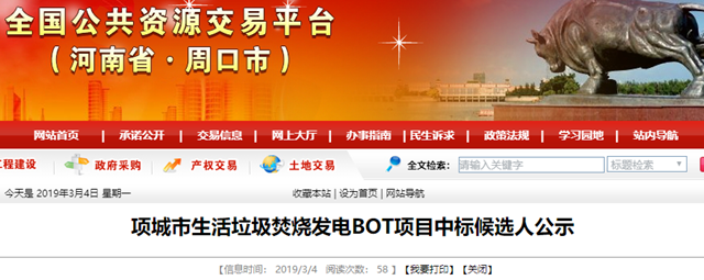 原標(biāo)題:項(xiàng)城市生活垃圾焚燒發(fā)電BOT項(xiàng)目中標(biāo)公示,中國天楹排名第一
