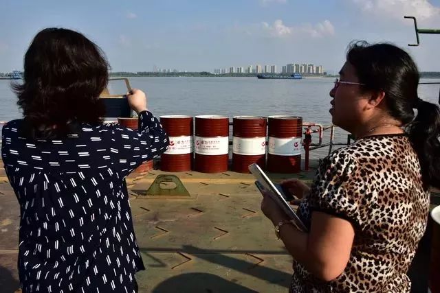 2017年9月,原環(huán)境保護部長江經濟帶飲用水水源地環(huán)境保護執(zhí)法專項行動第一督查組在湖北荊州督查。圖為碼頭上的危險化學品引起督查人員注意。攝影/章軻
