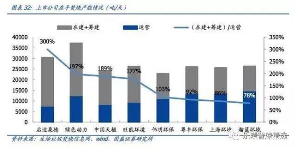 2015年存量垃圾焚燒產(chǎn)能為23.5萬噸/日,規(guī)劃產(chǎn)能提升150%,年復(fù)合增速20%,總投資2518億元。目前垃圾焚燒上市公司(在建+籌建)/(運(yùn)營)產(chǎn)能均超過70%,預(yù)計(jì)2019-2020進(jìn)入投產(chǎn)大年,業(yè)績加速釋放。