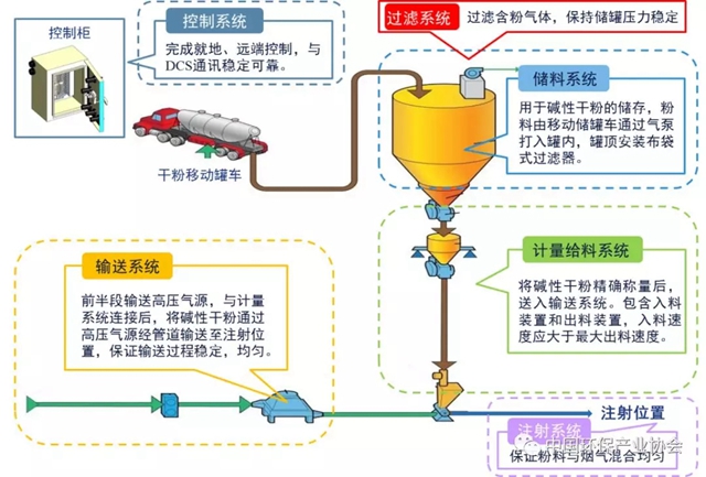 在SCR脫硝系統(tǒng)后煙道內(nèi)噴射堿性吸附劑與煙氣中SO3和汞(Hg)反應(yīng)生成固體顆粒物,再經(jīng)除塵實(shí)現(xiàn)對(duì)煙氣中SO3和Hg的有效脫除。
