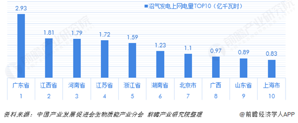 從各省市的生物質(zhì)發(fā)電上網(wǎng)電量的規(guī)模排行來看,山東省、浙江省和廣東省分別為農(nóng)林生物質(zhì)發(fā)電上網(wǎng)電量、垃圾發(fā)電上網(wǎng)電量和沼氣發(fā)電上網(wǎng)電量的擁有量的第一位,規(guī)模分別為63億千瓦時、53.1億千瓦時和2.93億千瓦時。安徽省、黑龍江省、江蘇省、河北省、湖北省和吉林省得農(nóng)林生物質(zhì)發(fā)電上網(wǎng)電量均超過20億千瓦時;江蘇省、廣東省和山東省的垃圾發(fā)電上網(wǎng)電量也在20億千瓦時之上;沼氣發(fā)電的規(guī)模整體較少,除了廣東之外,江西、河南、江蘇、浙江、湖南和北京的沼氣發(fā)電上網(wǎng)電量也排在前列。