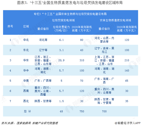 華東地區(qū)依然是垃圾焚燒建設(shè)和農(nóng)林生物質(zhì)直燃發(fā)電的重點區(qū)域,2020年規(guī)劃的垃圾焚燒發(fā)電裝機規(guī)模達到310萬千瓦,農(nóng)林生物質(zhì)直燃發(fā)電的規(guī)劃裝機規(guī)模達到210萬千瓦;2020年西南和華中地區(qū)規(guī)劃的垃圾焚燒發(fā)電裝機規(guī)模也將分別達到120萬千和100萬千瓦;華中、華北和東北地區(qū)的農(nóng)林生物質(zhì)直燃發(fā)電的規(guī)劃裝機規(guī)模分貝為140萬千瓦、120萬千瓦和100萬千瓦。