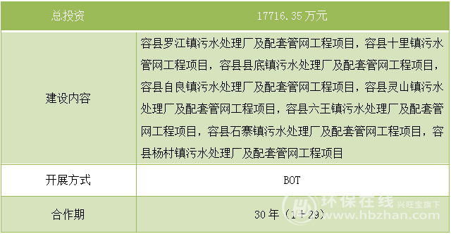廣西容縣8個鎮(zhèn)級污水處理廠工程PPP項目