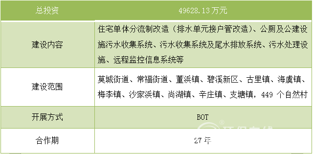 涉及 449 個自然村進行污水收集與處理,主要建設內容為:住宅單體分流制改造(排水單元接戶管改造)、公廁及公建設施污水收集系統(tǒng)、污水收集系統(tǒng)及尾水排放系統(tǒng)、污水處理設施、遠程監(jiān)控信息系統(tǒng)等。