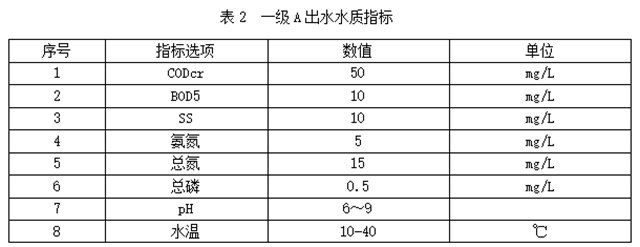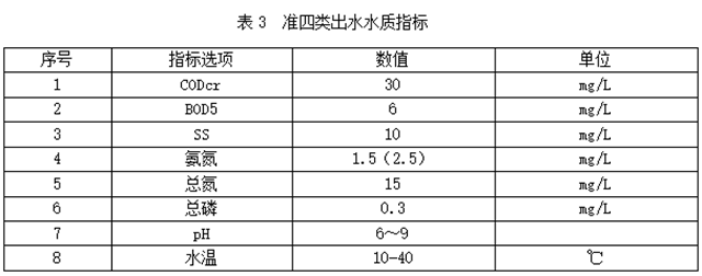原水經(jīng)處理后,出水水質(zhì)達(dá)到《城鎮(zhèn)污水處理廠污染物排放標(biāo)準(zhǔn)》一級(jí)A標(biāo)準(zhǔn)或參照《地表水環(huán)境質(zhì)量標(biāo)準(zhǔn)》IV類水的準(zhǔn)四類水達(dá)標(biāo)排放,水質(zhì)指標(biāo)見下表: