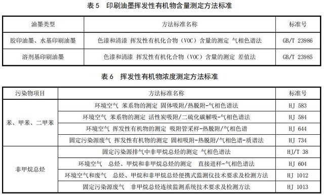 5.2.4 分析方法 按照GB/T 3186的規(guī)定對即用狀態(tài)的印刷油墨進行取樣,印刷油墨中揮發(fā)性有機物的含量檢測按照 表5執(zhí)行;大氣中揮發(fā)性有機物的分析測定按照表6執(zhí)行。