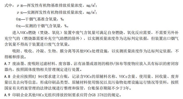 3.9 揮發(fā)性有機物 volatile organic compounds(VOCs) 參與大氣光化學(xué)反應(yīng)的有機化合物,或者根據(jù)規(guī)定的方法測量或核算確定的有機化合物。 在表征 VOCs 總體排放情況時,根據(jù)印刷業(yè)特征和環(huán)境管理要求,本標(biāo)準(zhǔn)采用非甲烷總烴(以 NMHC 表示)作為污染物控制項目。