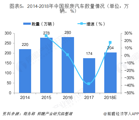 數(shù)據(jù)顯示,2017年我國(guó)汽車報(bào)廢數(shù)量?jī)H為174萬輛。我國(guó)整體汽車報(bào)廢率較低,明顯低于發(fā)達(dá)國(guó)家6%-8%的水平。