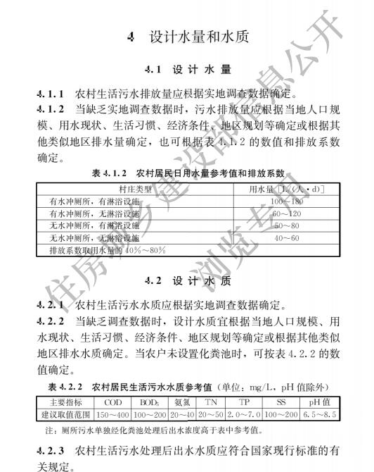 2、設計水量和水質。不同地區(qū)農村生活習慣、生活水平、氣候條件、水源、水資源結構的差異,導致農村污水排放和水質差異較大,難以給出具體的設計值。標準所列的數據范圍僅在沒有基本數據的情況下供當地參考。實地調查應是確定農村污水排放和水質的首要選擇。