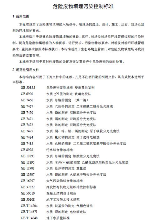危險(xiǎn)廢物填埋污染控制標(biāo)準(zhǔn)