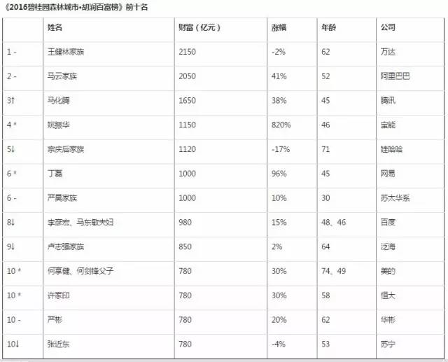 除上述企業(yè)家之外,還有幾家環(huán)保企業(yè)和跨界投資環(huán)保、涉及環(huán)保業(yè)務(wù)的企業(yè),其掌舵人入圍了《2016胡潤(rùn)百富榜》500強(qiáng),名單包括——