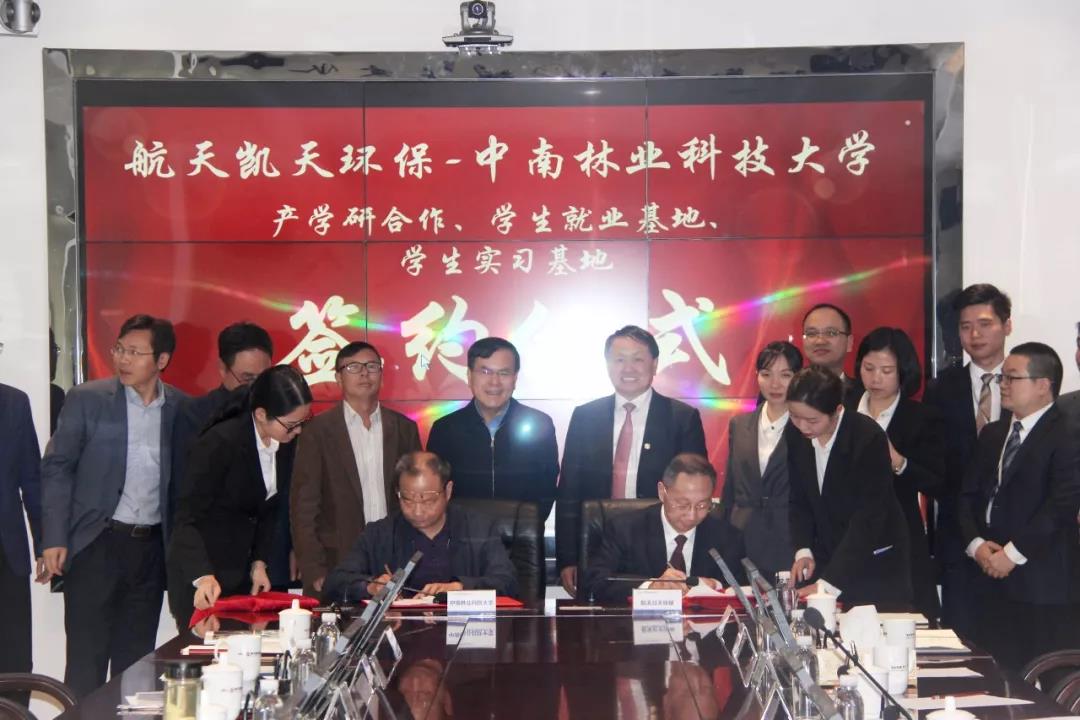 2019年11月6日,航天凱天環(huán)保科技股份有限公司與中南林業(yè)科技大學(xué)在航天凱天工業(yè)園內(nèi)成功簽訂產(chǎn)學(xué)研合作協(xié)議,學(xué)生就業(yè)、實(shí)習(xí)基地協(xié)議。中南林業(yè)科技大學(xué)黨委書記王漢青、環(huán)境科學(xué)與工程學(xué)院院長王平、科技處副處長付紅軍等,航天凱天環(huán)??偛萌~明強(qiáng)、副總裁曾毅夫、總裁助理伍蕓昕等出席簽約儀式,總裁助理葉明強(qiáng)主持會議。