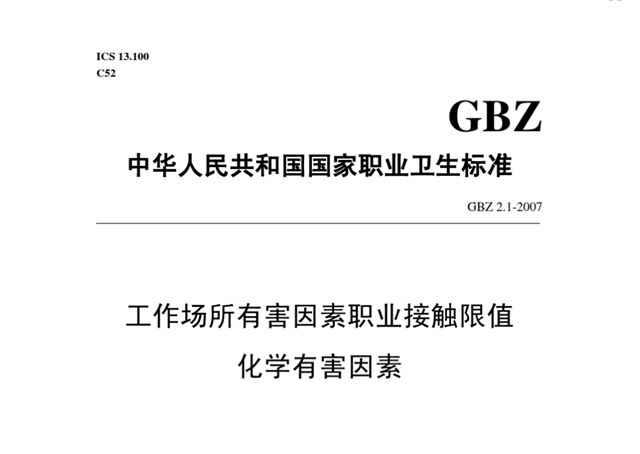 ?、贕BZ 2.1-2007 工作場(chǎng)所有害因素職業(yè)接觸限值 化學(xué)有害因素