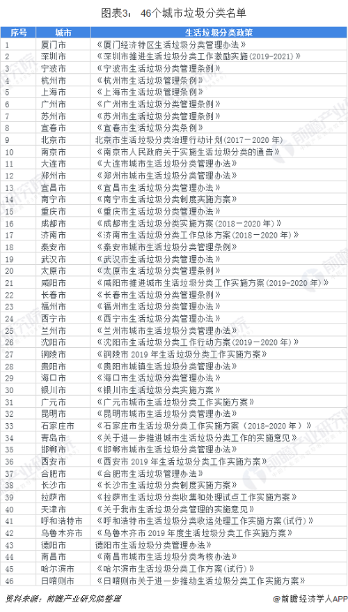 三、46個重點(diǎn)城市開始實(shí)施垃圾分類