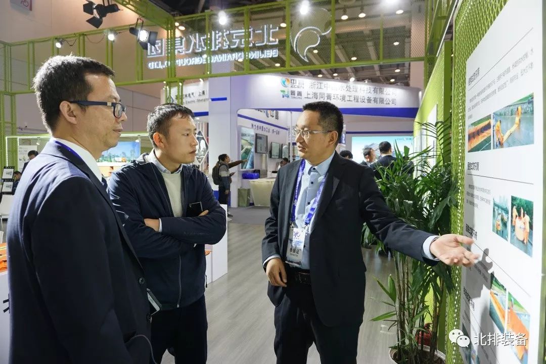 北京排水集團(tuán)受邀參展本屆展會(huì),集中展示了北排創(chuàng)造、北排服務(wù)、北排品牌,是本屆展會(huì)重點(diǎn)展示區(qū)域之一。北排裝備公司作為北排集團(tuán)產(chǎn)業(yè)鏈的重要環(huán)節(jié),由公司總經(jīng)理劉啟誠(chéng)親自帶隊(duì)參展,重點(diǎn)展示了預(yù)處理固液分離、生物處理、深度處理、管網(wǎng)防汛、村鎮(zhèn)污水處理等產(chǎn)品。展會(huì)期間國(guó)務(wù)院參事、中國(guó)城市科學(xué)研究會(huì)理事長(zhǎng)、住房和城鄉(xiāng)建設(shè)部原副部長(zhǎng)仇保興,北京城市排水集團(tuán)有限責(zé)任公司黨委書(shū)記、董事長(zhǎng)鄭江等領(lǐng)導(dǎo)蒞臨公司展位參觀指導(dǎo)。