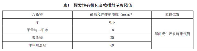 排氣筒揮發(fā)性有機化合物排放濃度限值應符合表1規(guī)定。