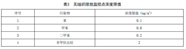 無組織排放監(jiān)控點濃度限值應符合表3規(guī)定。