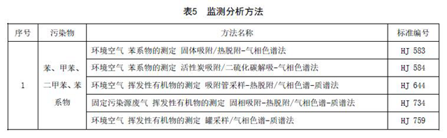 揮發(fā)性有機化合物濃度的測定應采用表5所列的方法標準或國家主管部門認定的等效方法。