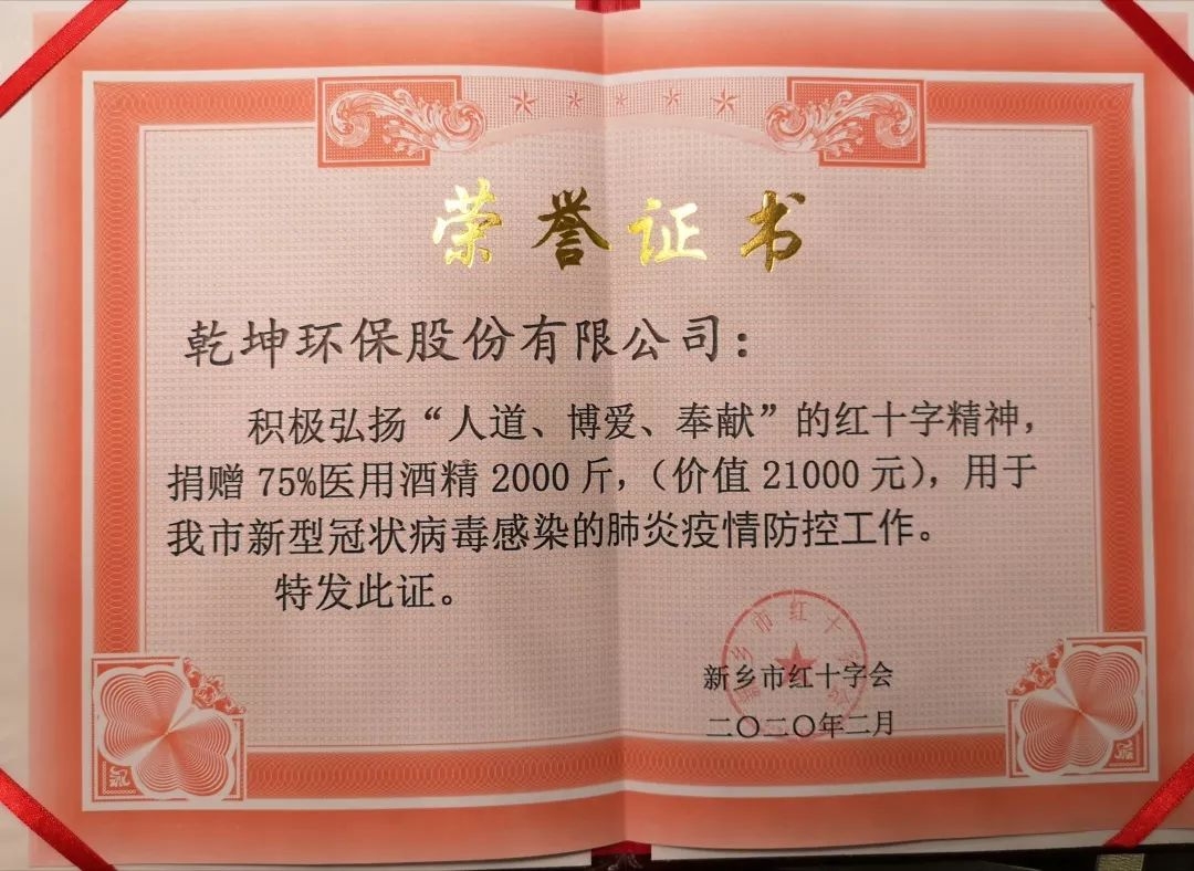 早在2020年1月27日,疫情開始之初,乾坤環(huán)保就向河南省青少年發(fā)展基金會(huì)捐款5000元,用于馳援鄂豫、抗擊疫情。
