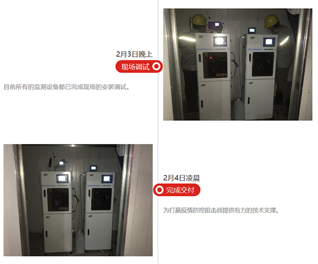 此次緊急馳援前方現(xiàn)場設(shè)備為公司助力武漢防疫定向捐贈,包括COD、氨氮、余氯等參數(shù)水質(zhì)在線監(jiān)測設(shè)備,2月2日水質(zhì)在線監(jiān)測設(shè)備均已完成現(xiàn)場安裝調(diào)試,截至2月5日所有監(jiān)測設(shè)備已全部投入正常運(yùn)行。