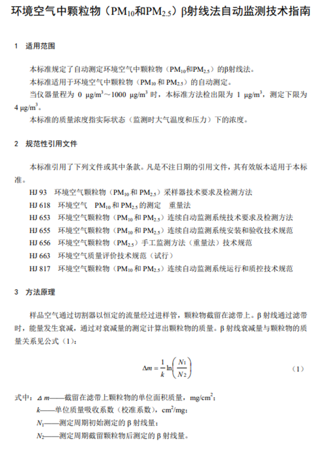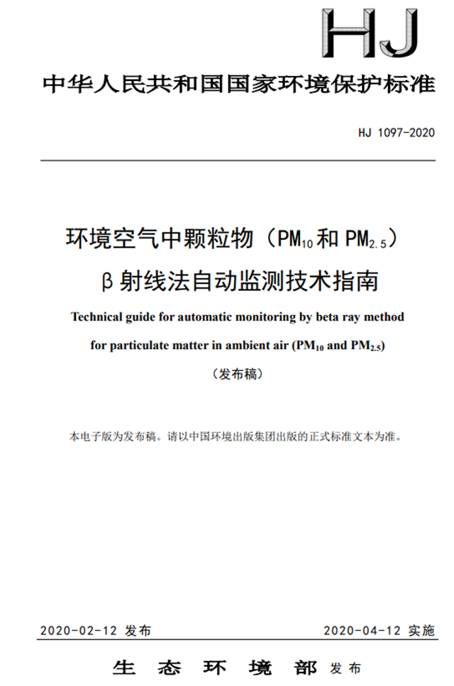 環(huán)境空氣中顆粒物(PM10和PM2.5)β射線法自動(dòng)監(jiān)測(cè)技術(shù)指南(HJ1097-2020)