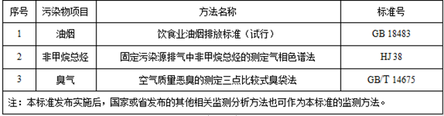 餐飲業(yè)大氣污染物的測定應按照表4規(guī)定的方法執(zhí)行。
