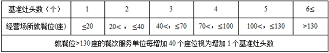 表2 餐飲服務單位基準灶頭數(shù)的折算方法