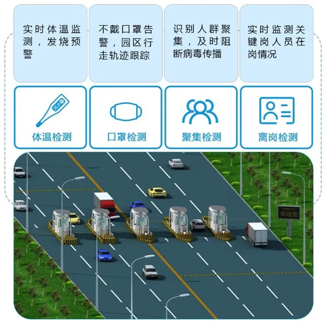 針對疫情防控,平臺增加疫情監(jiān)測子系統(tǒng),利用生物識別技術(shù)、熱成像測溫技術(shù)、視頻智能分析等技術(shù)手段,對出入口行人快速測量,及時發(fā)現(xiàn)體溫異常人員,執(zhí)行快速干預手段,防止病毒疫情在園區(qū)出現(xiàn)大范圍感染人員擴散的危險。