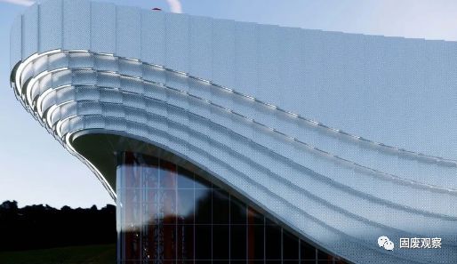 項目的精神內涵受到‘藝術品發(fā)布會’的啟發(fā),當藝術品揭幕那一刻,人們的期待與興奮達到頂點,本項目在建筑形式上試圖營造這樣一種時刻與氛圍:廠房的建筑表皮采用柔美動感的形式,依據發(fā)電廠工藝設備的高低起伏,將廠房和煙囪包裹為一個優(yōu)美的整體,猶如一張正在揭開的帷幕,將廠房內部的機器作為‘藝術品’一般,半遮半現(xiàn)地展示給到訪的公眾。