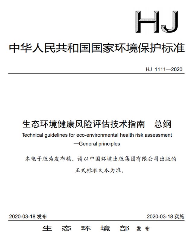 生態(tài)環(huán)境部發(fā)布標(biāo)準(zhǔn):《生態(tài)環(huán)境健康風(fēng)險(xiǎn)評估技術(shù)指南 總綱》
