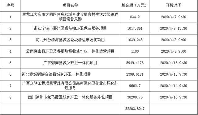 2020年4月,環(huán)衛(wèi)招標的節(jié)奏依舊有點好。