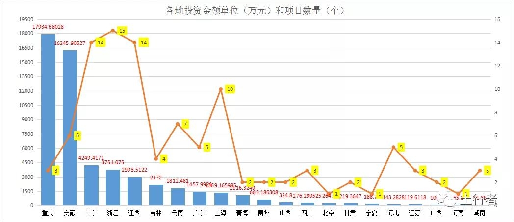 重慶投資金額超過1.79億元,占3月總投資額的32%,投資金額最多;