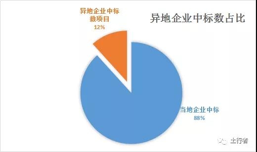 98家單位為當?shù)仨椖恐袠?,占中標企業(yè)數(shù)的88%,項目所在地企業(yè)中標比率高;業(yè)務類型調查評估項目為主為50個,占總項目的48.5%;