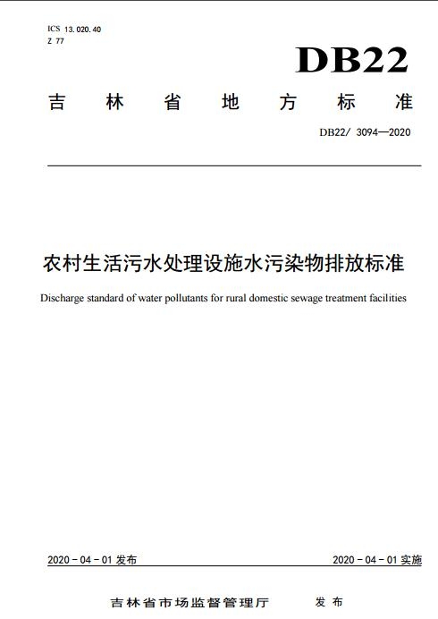原標(biāo)題:吉林省《農(nóng)村生活污水處理設(shè)施水污染物排放標(biāo)準(zhǔn)》(DB22/3094——2020)