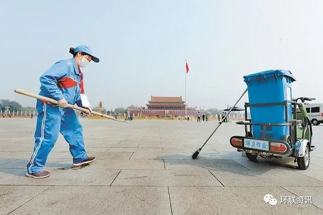 “您已進(jìn)入廣場地區(qū),請將手里的垃圾按分類要求投入相應(yīng)垃圾箱,共同愛護(hù)廣場環(huán)境?!苯裉煲辉纾哌M(jìn)天安門廣場的游客都會聽到這樣一段提示語,提醒大家注意垃圾分類。幾臺電動保潔清運車在廣場上有序穿梭,車后掛著藍(lán)色或銀色的分類垃圾桶。