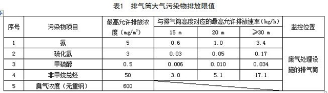 4.2 排氣筒大氣污染物排放限值執(zhí)行表1的規(guī)定。