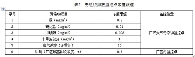 4.3 無組織排放監(jiān)控點濃度限值執(zhí)行表2的規(guī)定