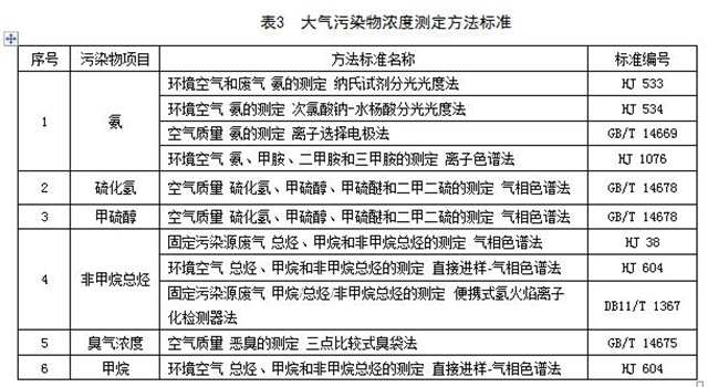 5.2.4 城鎮(zhèn)污水處理廠排放的大氣污染物濃度的測定按照表3所列的方法標準執(zhí)行。本標準發(fā)布實施后,表3所列污染物,如有新發(fā)布的國家環(huán)境監(jiān)測分析方法標準或北京市地方環(huán)境監(jiān)測分析方法標準,其方法適用范圍相同的,也適用于本標準相應污染物的測定。