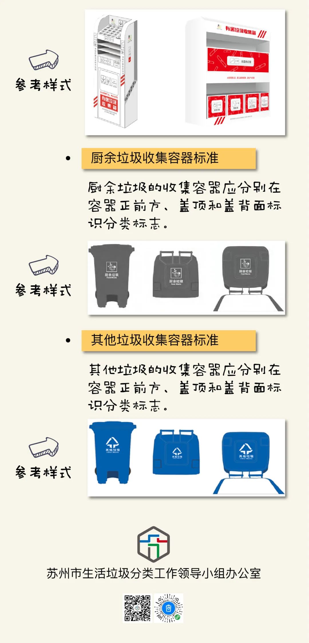 生活垃圾分類投放設施配置應與區(qū)域分類收集、分類運輸、分類處理系統(tǒng)和生活垃圾產(chǎn)生量、收運頻率要求相適應。本文匯總了有關蘇州市生活垃圾投放設施配置的知識,供大家參閱。