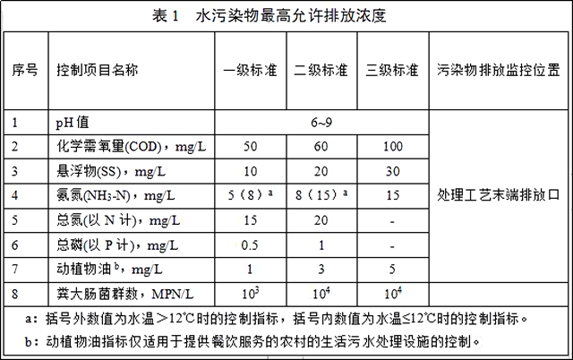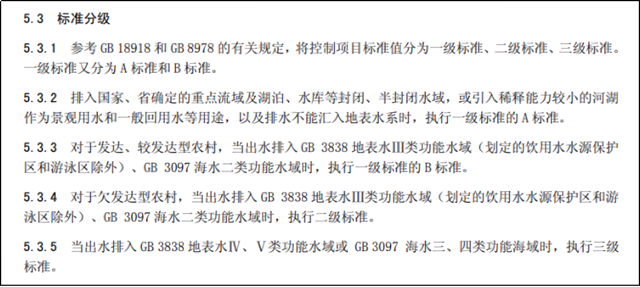 其中農(nóng)村生活污水處理后不排入地表水體,沒有明確回用對象進行再利用的(例如排入空地自然蒸發(fā)),執(zhí)行三級標準;