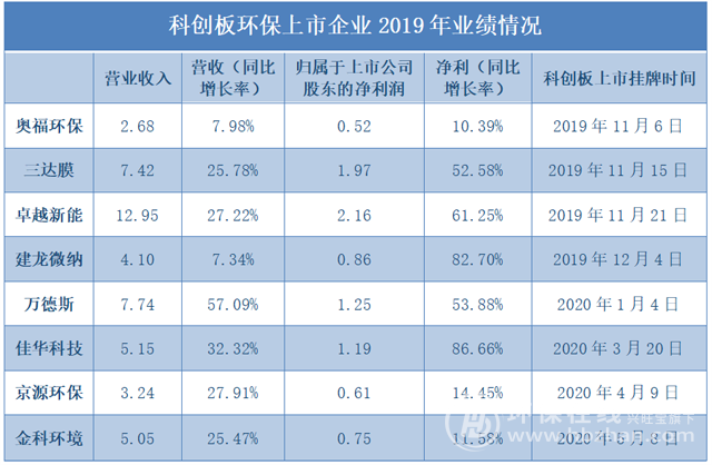即使在困難重重的2019年,也有5家企業(yè)凈利潤實現(xiàn)超過50%的漲幅,顯示出科創(chuàng)板“環(huán)保實力”。
