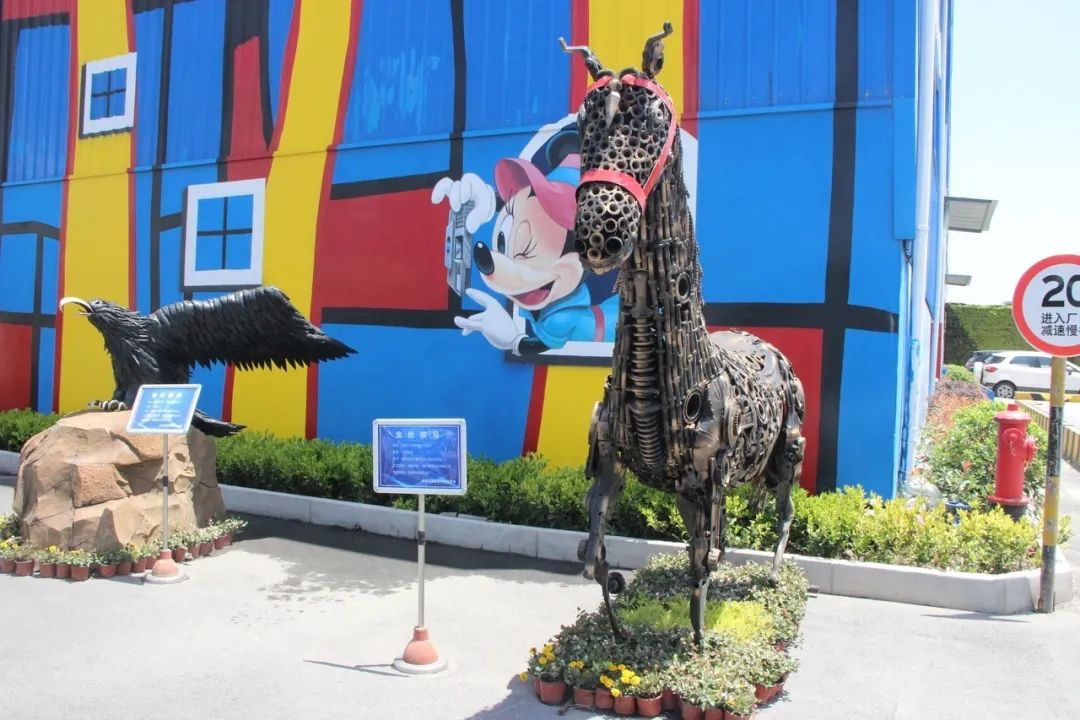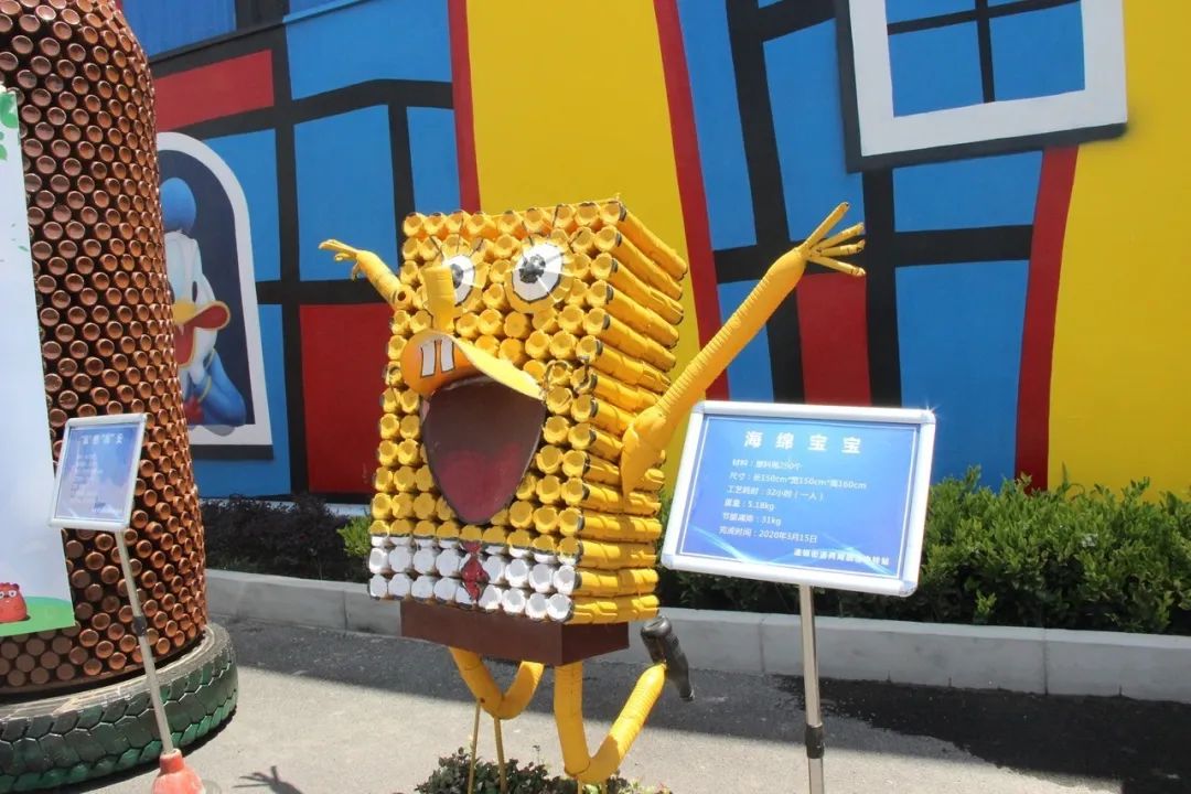 “看,這個(gè)是我們用290個(gè)飲料瓶,耗時(shí)32小時(shí)制作成的海綿寶寶;這個(gè)是用708個(gè)廢棄汽車零部件,耗時(shí)180個(gè)小時(shí)制作的一匹金色駿馬……”浦錦街道兩網(wǎng)融合中轉(zhuǎn)服務(wù)站運(yùn)營(yíng)方介紹道。而作為“門面擔(dān)當(dāng)”的變形金剛大黃蜂,則全部是利用汽車、摩托車、滅火器等的舊零部件制成,重量達(dá)400余公斤。