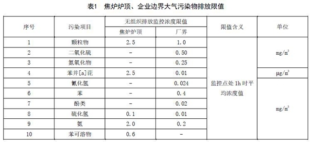 煉焦化學工業(yè)大氣污染物無組織排放與控制標準