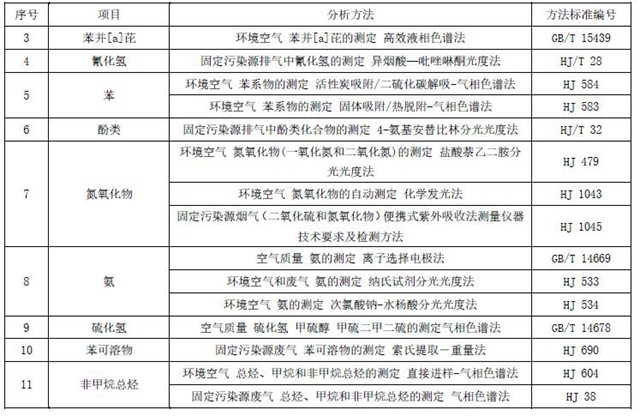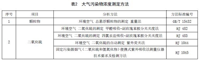 5.3.3 對企業(yè)排放大氣污染物濃度的測定選取表2所列的方法標準。本標準發(fā)布實施后,有新發(fā)布的國家或山西省監(jiān)測分析方法標準,其方法使用范圍相同的,也適用于本標準對應污染物的測定。