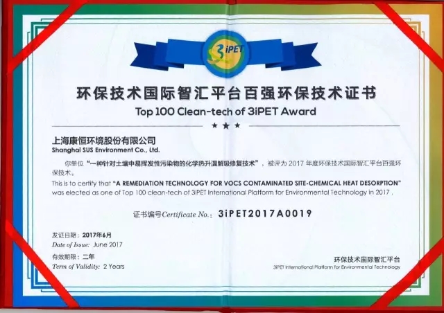 康恒環(huán)境“化學(xué)熱升溫?zé)峤馕迯?fù)技術(shù)”被授予“百強(qiáng)環(huán)保技術(shù)”獎(jiǎng)
