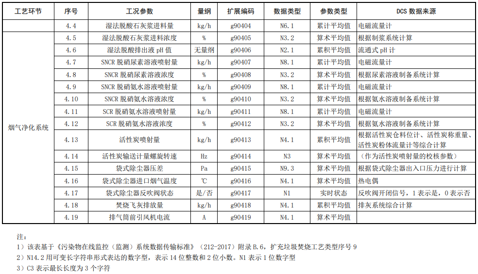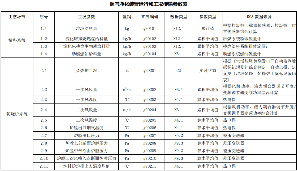 煙氣凈化裝置運(yùn)行和工況傳輸參數(shù)表如下: