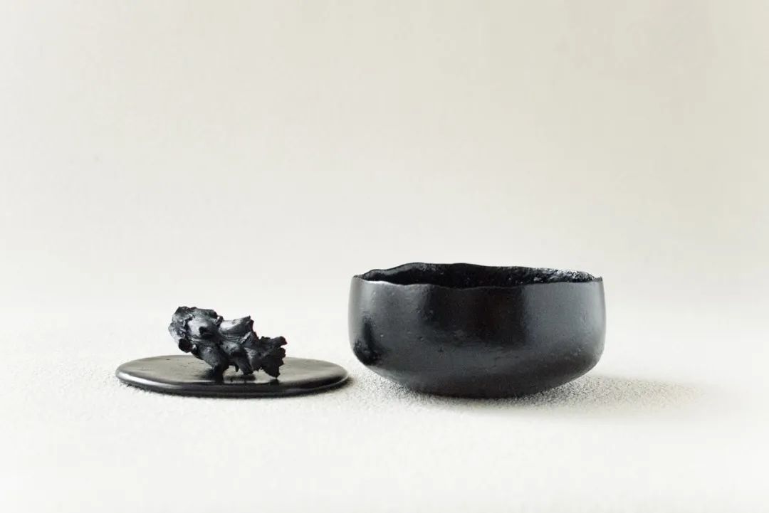 器皿的黑色本體,來(lái)自食物碳化后的本真色彩,這背后也別有一番深意。Araki篤信萬(wàn)物有靈,把食物碳化的過(guò)程,仿佛是為那些被拋棄的生命舉行一場(chǎng)莊嚴(yán)儀式。垃圾焚化后,轉(zhuǎn)世成為美麗的造物,也是這個(gè)系列名字“Anima”(靈魂)的來(lái)源。